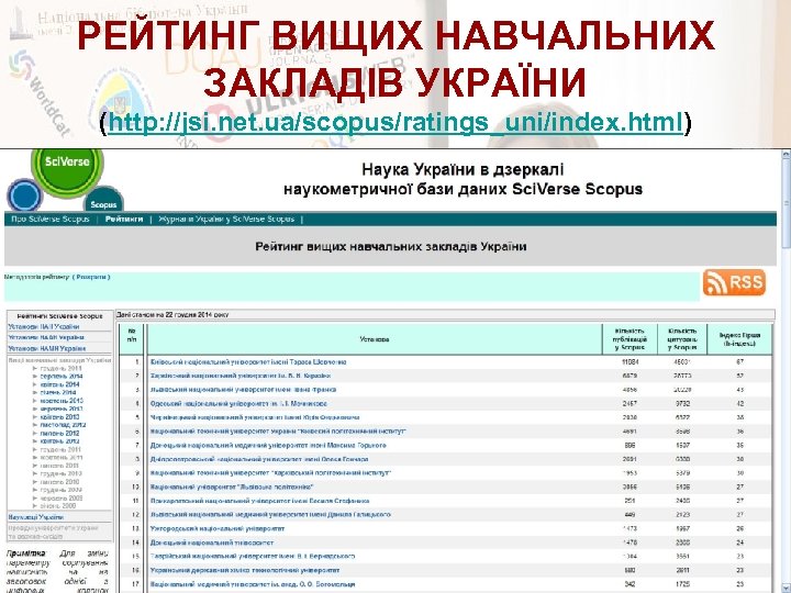РЕЙТИНГ ВИЩИХ НАВЧАЛЬНИХ ЗАКЛАДІВ УКРАЇНИ (http: //jsi. net. ua/scopus/ratings_uni/index. html)
