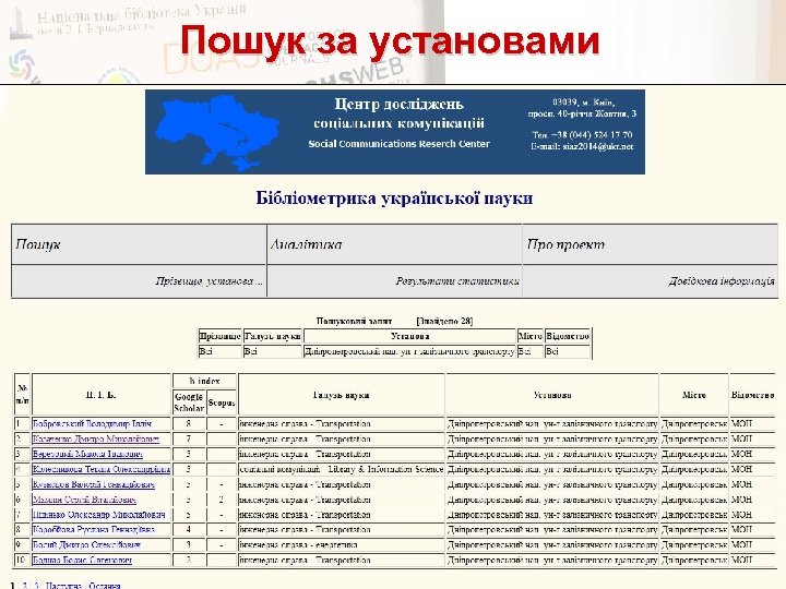 Пошук за установами