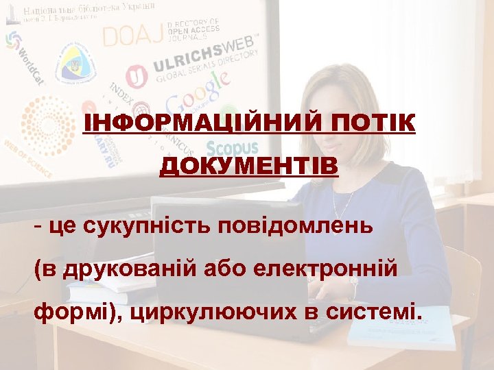 ІНФОРМАЦІЙНИЙ ПОТІК ДОКУМЕНТІВ - це сукупність повідомлень (в друкованій або електронній формі), циркулюючих в системі.