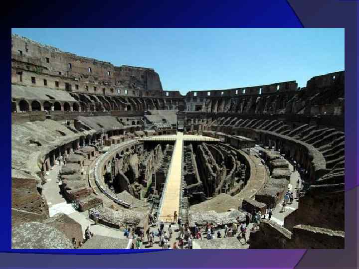 Колизей в XX—XXI веках С большим вниманием Колизей охраняется нынешним итальянским правительством Просачивание дождевой воды, атмосферное загрязнение и вибрация от городского движения привели Колизей в критическое состояние 7 июля 2007 года, был признан одним из 7 Новых чудес света Колизей в разрезе