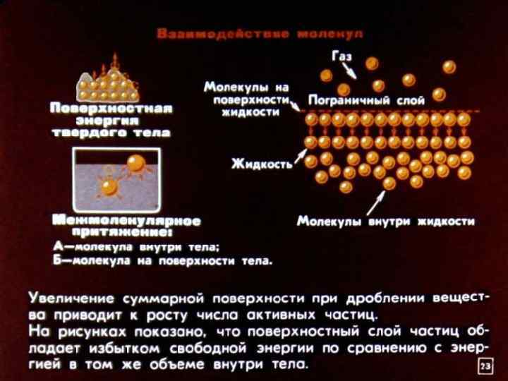 Чем же объясняется своеобразие свойств вещества в коллоидном состоянии? Прежде всего, тем, что в этом состоянии значительная доля всех молекул или атомов, составляющих вещество, находится на поверхности раздела фаз; эти молекулы являются «особенными» (отличными от тех, которые находятся в объеме, при том же химическом составе) как по положению в несимметричном силовом поле, так и по энергетическому состоянию. В итоге вклад поверхностных сил в свойства системы существенно превосходит вклад объемных свойств составляющих ее веществ. С понятием «поверхность» связано представление о поверхностных явлениях. Наиболее наглядно представить поверхностные явления можно на примере границы раздела жидкость/газ.