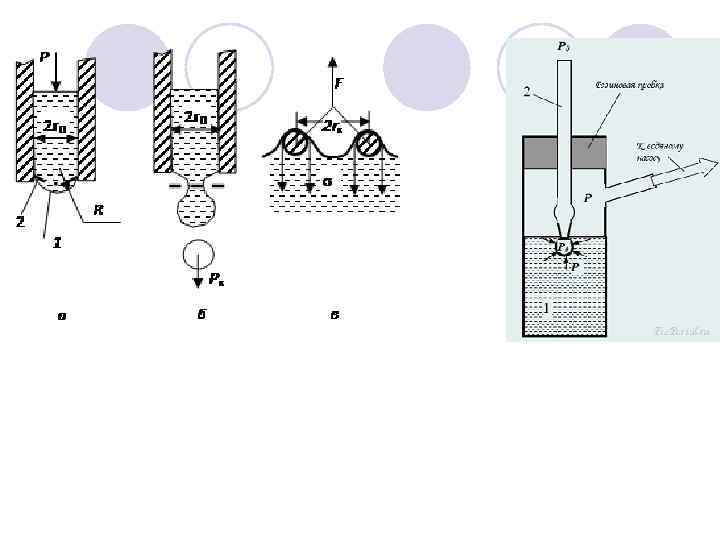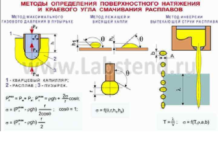Наличие поверхностного натяжения порождает ряд явлений: Изменение давления под изогнутой поверхностью жидкости Δ P = 2 σжг / r закон Лапласа Изменение давления пара над искривленной поверхностью RT ln (Pr/P 0) = V (2 σжг / r) уравнение Кельвина-Томсона и изменение уровня жидкости в капиллярах Капиллярное поднятие является следствием поверхностных явлений и описывается формулой Жюрена. h = 2 σжг cos θ / r g Δρ 2πr(σтг - σтж ) = h πr 2 g Δρ σтг - σтж = σжг cos θ