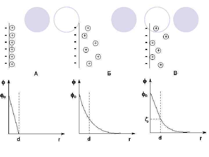 Соответственно, полный скачок потенциала складывается из падения потенциала в плотном слое (φ0–φδ) и в диффузной части ДЭС (φδ). Величина φδ называется штерновским потенциалом или потенциалом диффузного слоя. Распределение противоионов между плотной и диффузной частями ДЭС зависит от их специфической адсорбционной способности и от ионной силы среды. При увеличении концентрации электролита в дисперсионной среде диффузная часть ДЭС сжимается и все большая часть противоионов накапливается в плотной части ДЭС. При этом ДЭС по структуре приближается к слою, предусмотренному в теории Гельмгольца, а φδ – потенциал падает, достигая нуля, когда слой Гуи полностью исчезает.