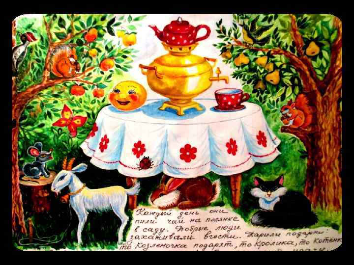 И была у Колобка Дружная Семья и Много Весёлых Друзей! И были они все очень рады и счастливы!