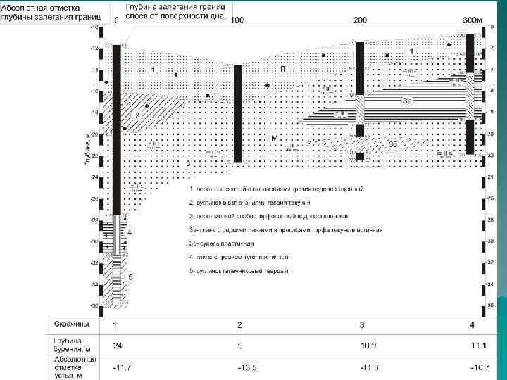 Консистенция глинистых и степень водонасыщения песчаных грунтов на колонках скважин Супеси, суглинки, глины твердые Пластичные супеси Пески маловлажные Влажные пески Суглинки и глины полутвердые Суглинки и глины тугопластичные Суглинки и глины мягкопластичные и текучепластичные Суглинки и глины текучие Пески насыщенные водой