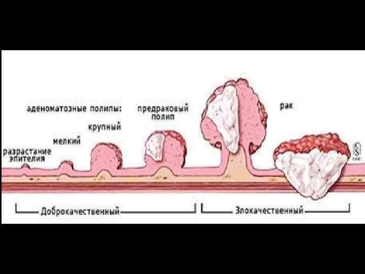 КОЛОНОФИБРОСКОПИЯ Малигнизированный полип Аденокарцинома Плоскоклеточный рак Саркома Капоши