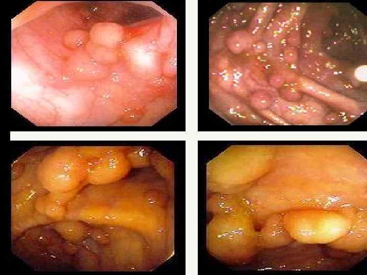 ПОЛИПЫ ТОЛСТОЙ КИШКИ Формирующийся полип (3 -4 мм) Полип на широком основании Полип на ножке Ворсинчатый полип