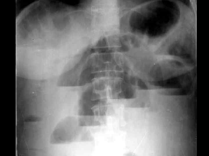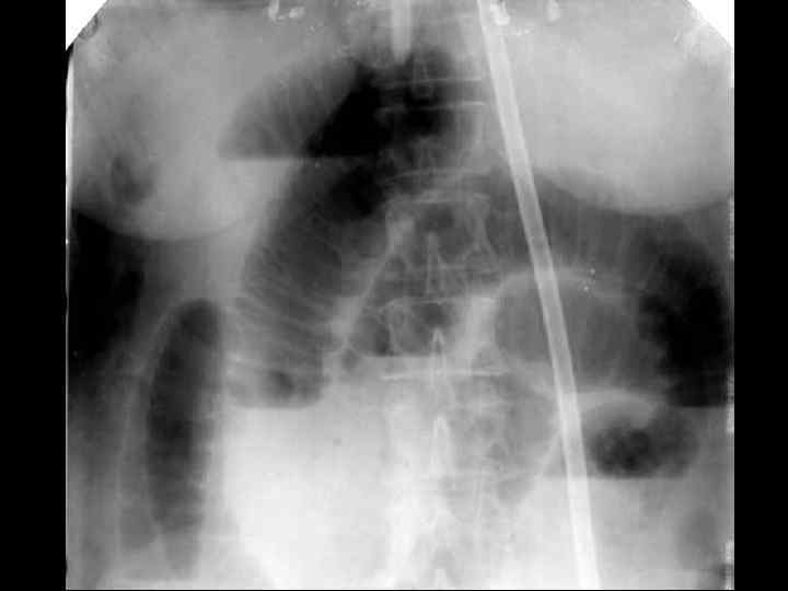 ОБТУРАЦИОННАЯ ТОЛСТОКИШЕЧНАЯ НЕПРОХОДИМОСТЬ • • опухолевый анамнез возраст больных схваткообразные боли в животе задержка стула и газов "поздняя" рвота вздутие живота интоксикация Симптомы Цеге–Мантейфеля, Обуховской больницы • при рентгенографии- множественные толсто- и тонкокишечные уровни, пневматоз толстой кишки