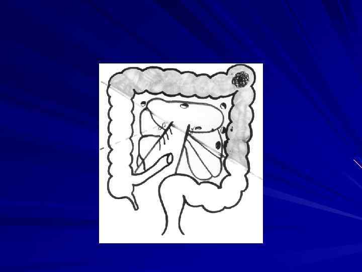 Распределение рака ободочной кишки ü Слепая кишка 25% ü Восходяший отдел ободочной кишки 9, 5% ü Поперечно ободочная кишка вместе с печеночным и селезеночным изгибами 17, 5% ü Нисходящий отдел ободочной кишки 5, 6% ü Сигмовидная кишка 42, 4%