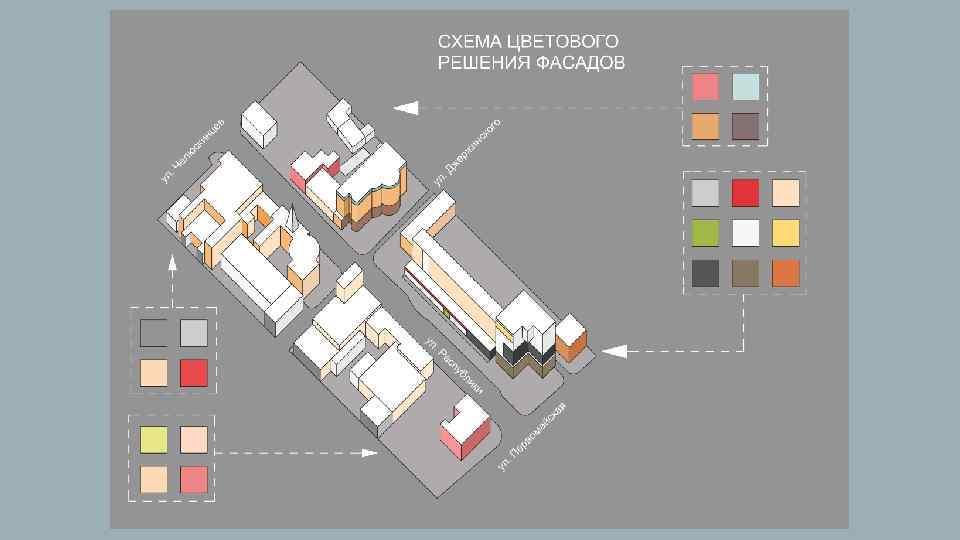 Колористическое решение фасадов фрагмента улицы по четной стороне