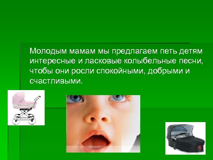 Молодым мамам мы предлагаем петь детям интересные и ласковые колыбельные песни, чтобы они росли спокойными, добрыми и счастливыми.