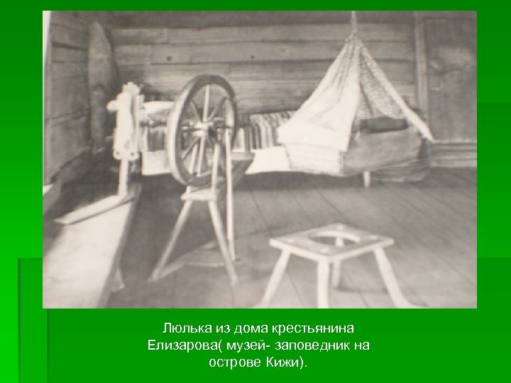 Люлька из дома крестьянина Елизарова( музей- заповедник на острове Кижи).