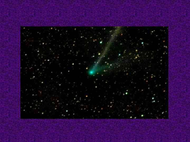 Кометы • Кометы- это небольшие небесные тела, движущееся в межпланетном пространстве и обильно выделяющее газ при сближении с Солнцем. С кометами связаны разнообразные физические процессы, от сублимации (сухое испарение) льда до плазменных явлений. • Кометы - это остатки формирования Солнечной системы, переходная ступень к межзвездному веществу.