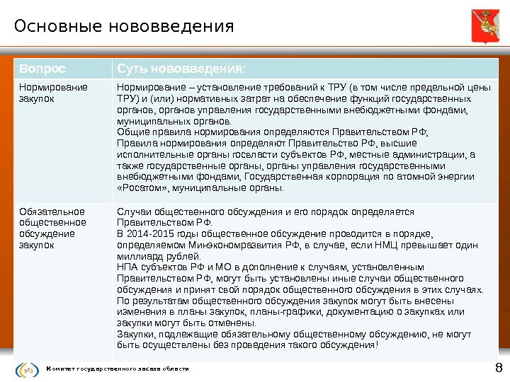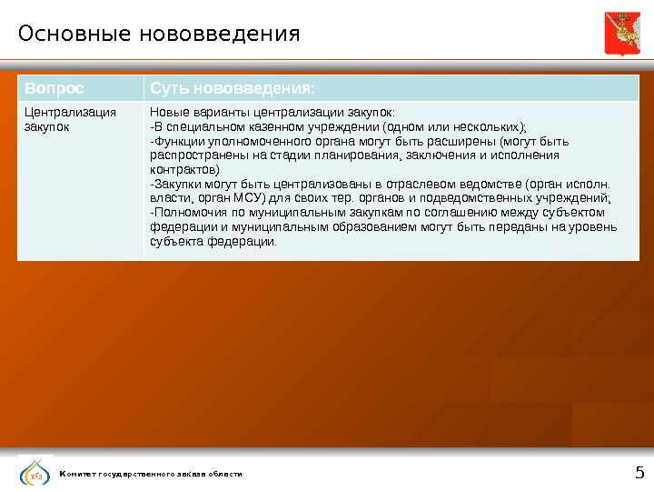 Комитет государственного заказа области 1 Основные нововведения