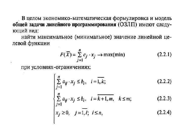 Виды ограничений в задачах линейного программирования • Стандартный вид – система ограничений имеет вид неравенств разного смысла; • Канонический вид – система ограничений имеет вид равенств; • Общий вид – в системе ограничений присутствуют как равенства так и неравенства