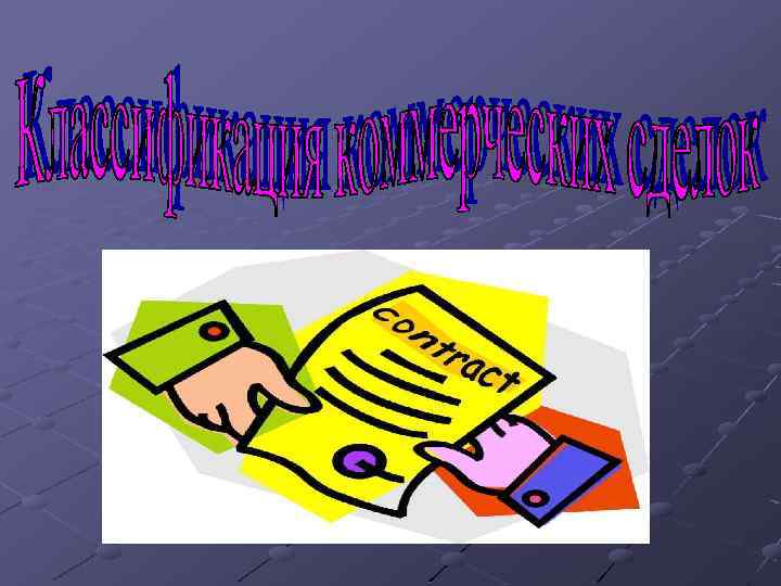 Коммерческие сделки делятся на: Основные; Вспомогательные; Бартерные.