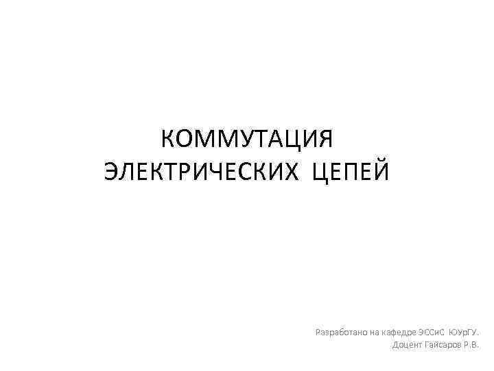 КОММУТАЦИЯ ЭЛЕКТРИЧЕСКИХ ЦЕПЕЙ Разработано на кафедре ЭССи. С ЮУр. ГУ. Доцент Гайсаров Р. В.