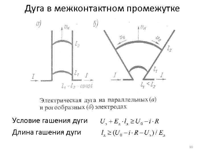 Дуга в межконтактном промежутке Условие гашения дуги Длина гашения дуги 11