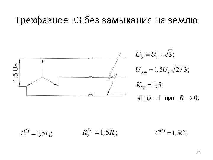 Трехфазное КЗ без замыкания на землю при 44