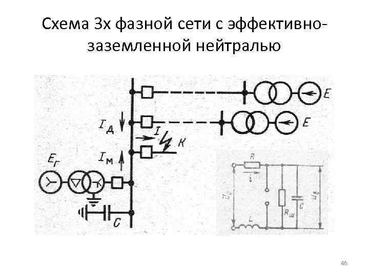 Схема 3 х фазной сети с эффективнозаземленной нейтралью 46