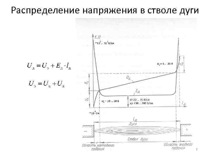 Распределение напряжения в стволе дуги 7