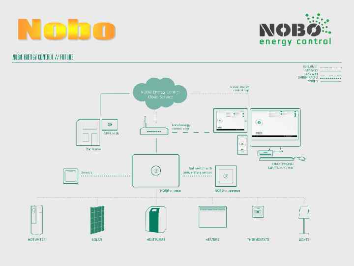 Управление Будущим Система Nobo Energy Control будет усовершенствована, дополнена новыми функциями и возможностями. • Новые приемники • Повышенная функциональность программного приложения. • Управление дополнительными возможностями обогрева и освещения. • Технология “Sky Service”, GPRS и двусторонняя связь (умная система измерений).