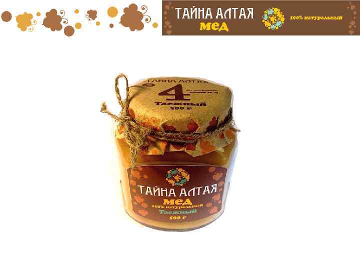 Компания « Тайна Алтая » Компания «Тайна Алтая» занимается производством меда, из года в год увеличивая объемы производства. «Тайна Алтая» — является производителем и переработчиком продукции. С запуском собственного предприятия в городе Барнауле (Алтайский край, Россия) в 2012 году, компания «Тайна Алтая» завершила создание уникального вертикальноинтегрированного производственного процесса, позволившего установить полный контроль всех этапов производства — от пасеки до конечного потребителя. Также компания в 2013 году заключила ряд важных контрактов с объемообразующими сетями России по выпуску С. Т. М.