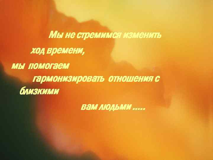 Мы не стремимся изменить ход времени, мы помогаем гармонизировать отношения с близкими вам людьми …. .