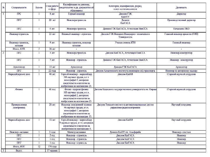 Ниже представляем Вашему вниманию сведения об ИТР, линейном персонале компании, данная информация будет представлена в подробном табличном виде. Ввиду того, что персонал компании обладает научными работами, монографиями и научными степенями, мы отразили лишь некоторых наших сотрудников. На сегодняшний день состав ИТР и линейного персонала представлен в количестве 35 человек.
