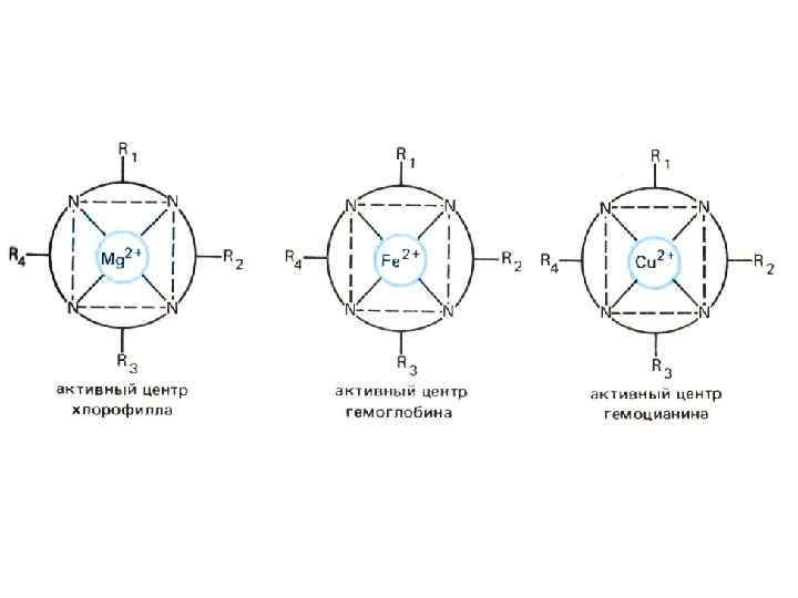 В биолигандах 2 вида комплексов: 1. Роль Ме высокоспецифична. Замена его даже на близкий ион приводит к полной утрате физиологической активности (гемоглобин) 2. Малопрочные комплексы образуются только на то время, которое нужно для выполнения их функций (например, металлоферменты – катализ).