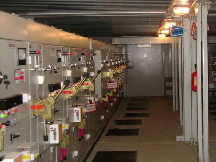 • • розподільна установка з боку низької напруги (РУНН) скла дається з: • шаф вводу низької напруги; • шаф ліній, що відходять, у яких встановлюються вимикачі стаціонарного або висувного типів; • секційної шафи