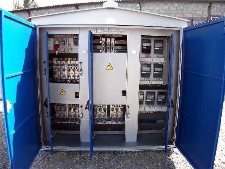• КТП для промислових підприємств складаються з повністю або частково закритих шаф та блоків з вмонтованими в них силовими апаратами та пристроями захисту і автоматики, поставляються на місце експлуатації в зібраному або повністю підготовленому для збірки стані. • В електропостачальній системі промислового підприємства КТП використовуються, як правило, як цехові трансформаторні підстанції.