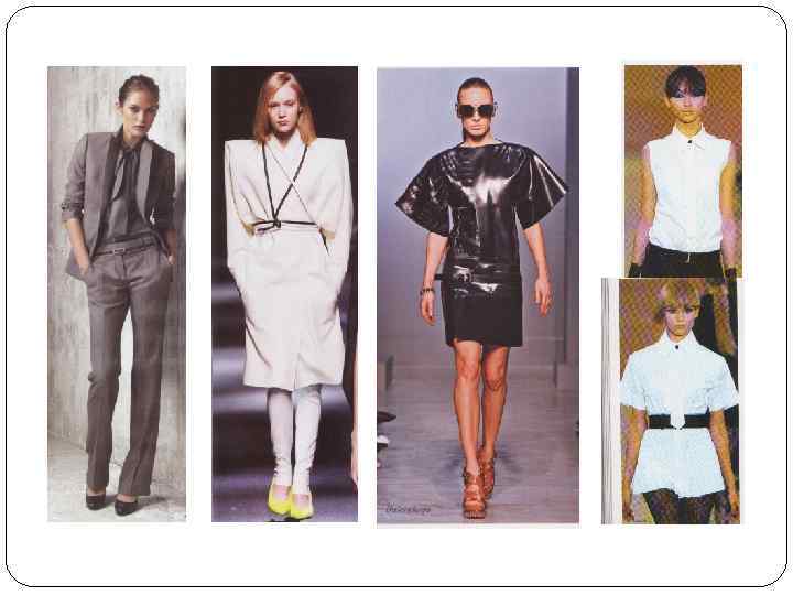 4. Симметрия и асимметрия в организации костюма Понятие симметрии и асимметрии традиционно рассматривались как эффективные средства композиционной организации формы в костюме и её композиционных элементах. В широком смысле понятие симметрии тесно смыкается с понятием закономерности как таковой, так как характеризует сохранение, постоянство определенных свойств объекта или явления относительно каких-либо изменений.