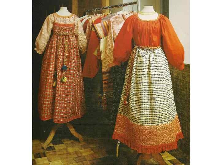 КОМПОЗИЦИЯ КОСТЮМА «ПРАЗДНИЧНАЯ ОДЕЖДА» : 1. РУБАХА «РУКАВА» , ДЛИННАЯ, С ДЛИННЫМИ РУКАВАМИ С ПРОРЕХОЙ, ИЗ ТОНКОЙ Х/Б ТКАНИ И БАТИСТА, УКРАШЕНА ВЫШИВКОЙ БЕЛЫМИ НИТЯМИ ТАМБУРНЫМ ШВОМ 2. 3. 2. САРАФАН КОСОКЛИННЫЙ РАСПАШНОЙ, ИЗ ПАРЧОВОЙ ТКАНИ ФАБРИЧНОЙ РАБОТЫ НАЧАЛА 19 В. , УКРАШЕН ЗОЛОТЫМ ЗУБЧАТЫМ ГАЛУНОМ 3. ЕПАНЕЧКА НА ЛЯМКАХ, КОРОТКАЯ, РАСПАШНАЯ, СЗАДИ ЗАЛОЖЕНА ТРУБЧАТЫМИ СКЛАДКАМИ 4. НА ЛЬНЯНЫХ ОЧЁСАХ ИЗ КРАСНОГО БАРХАТА, 5. РАСШИТА ЗОЛОТЫМИ НИТЯМИ В ПРИКРЕП, 6. ОБШИТА ГОЛУНОМ С ЗОЛОТОЙ БАХРОМОЙ