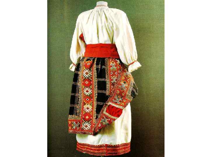 КОМПОЗИЦИЯ КОСТЮМА «ПРАЗДНИЧНАЯ ОДЕЖДА СМОЛЕНСКОЙ ГУБ. ЯРЦЕВСКОГО У. КОНЦА 19 – НАЧАЛА 20 В. » : 1. 2. 4. 6. 2. 3. РУБАХА С ПРЯМЫМИ ПОЛИКАМИ, ДЛИННАЯ, С ДЛИННЫМИ СУЖАЮЩИМИСЯ РУКАВАМИ, 3. ИЗ ДОМОТКАНОГО ХОЛСТА, РУКАВА ИЗ КРАСНОУЗОРНОГО БРАНОГО ШОЛСТА, 5. С ВЫШИВКОЙ, НА ГРУДИ ВСТАВКА КРАСНОУЗОРНОГО СИТЦА САРАФАН КОСОКЛИННЫЙ, ЗАСТЁЖКА ЛОЖНАЯ, С ПУГОВИЦАМИ, ИЗ Х/Б ТКАНИ, УКРАШЕН ШЁЛКОВОЙ УЗОРНОЙ ЛЕНТОЙ, ПОЛОСОЙ КУМАЧА, БЕЛОЙ ТЕСЬМОЙ И МИШУРНЫМ ГАЛУНОМ ПОЯС ДОМОТКАНЫЙ, ИЗ РАЗНОЦВЕТНОЙ ШЕРСТИ, С БОХРОМОЙ НА КОНЦАХ