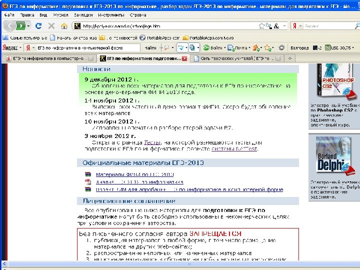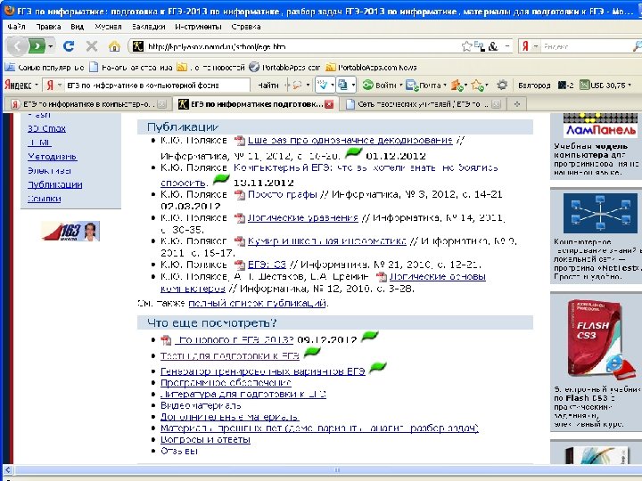 Ссылки на ресурсы: Сайт информационной поддержки единого государственного экзамена в компьютерной форме: http: //www. ege. ru Личный сайт Полякова Константина Юрьевича – доктора технических наук, учителя высшей категории: http: //kpolyakov. narod. ru