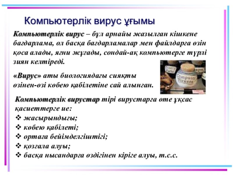 Компьютерлік вирустар. Архиваторлар компьютерлік вирустардың анықтамасы. Компьютерлік вирус