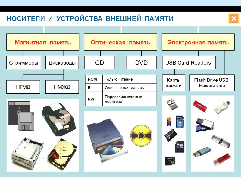 Жесткий диск Дискеты 5. Долговременная память CD-диски DVD-диски Флешкарты