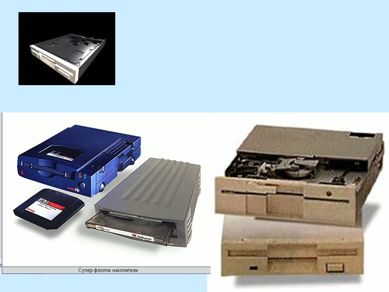 Диски как средства внешней памяти ПК приводятся в действие устройствами, которые можно отнести и к устройствам ввода, и к устройствам вывода информации. Это - дисководы или приводы дисков. Для разных типов дисков служат соответствующие дисководы. Дискета устанавливается в дисковод FDD (floppy-disk drive), автоматически в нём фиксируется и вращается только при программном обращении к ней, при неподвижных магнитных головках считывания-записи. Дисководы