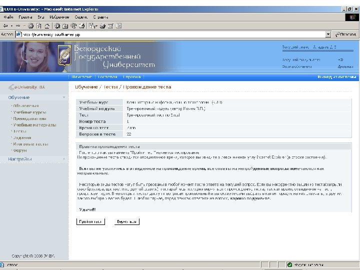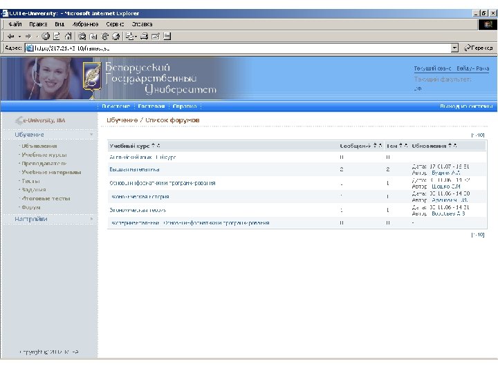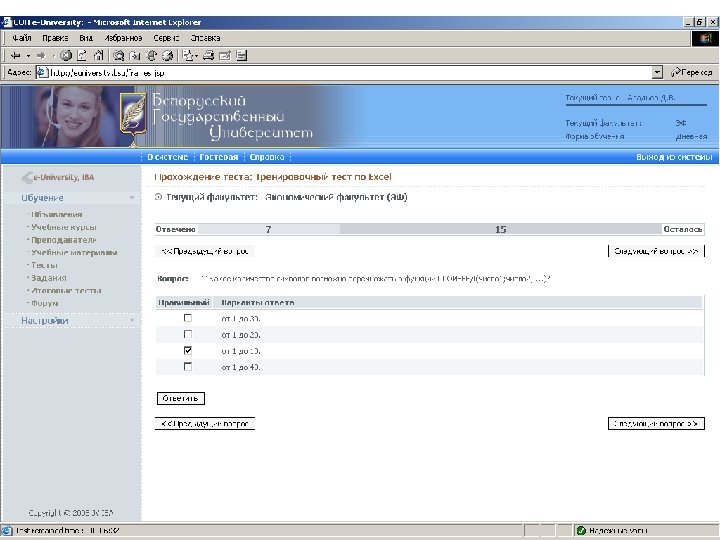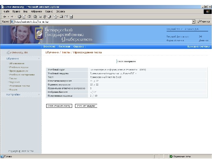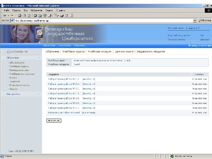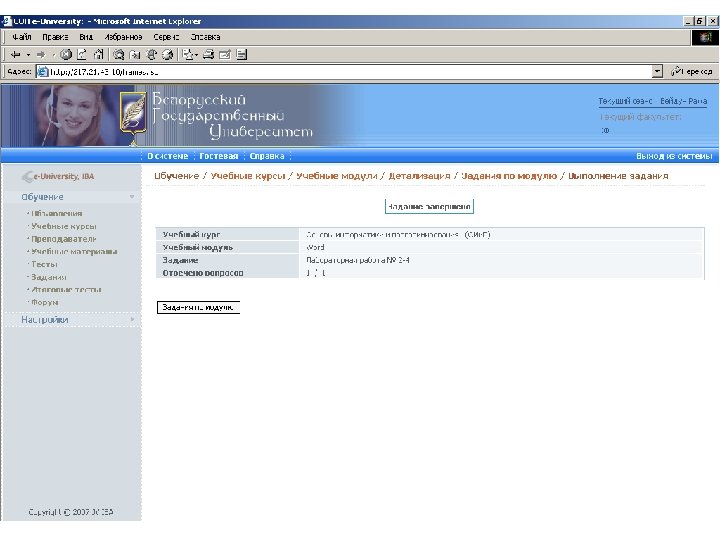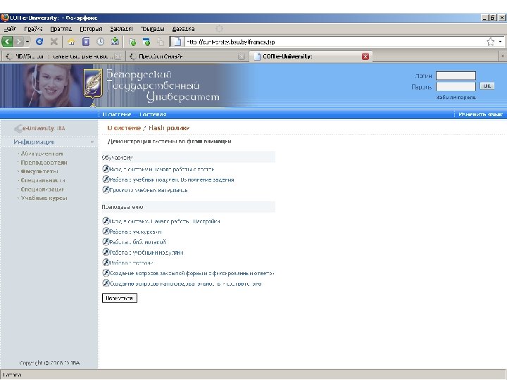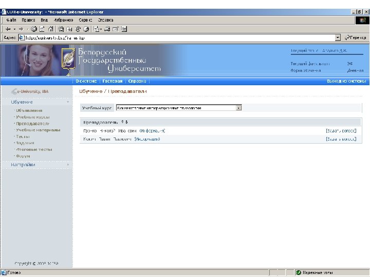 Информационные ресурсы курса http: // intranet. bsu – внутренняя сеть БГУ n http: //www. bsu. by - официальный сайт БГУ n http: // www. economy. bsu. by – официальный сайт экономического факультета n http: //euniversity. bsu. by – система дистанционного обучения студентов n http: //www. library. bsu. by – электронная библиотека БГУ n