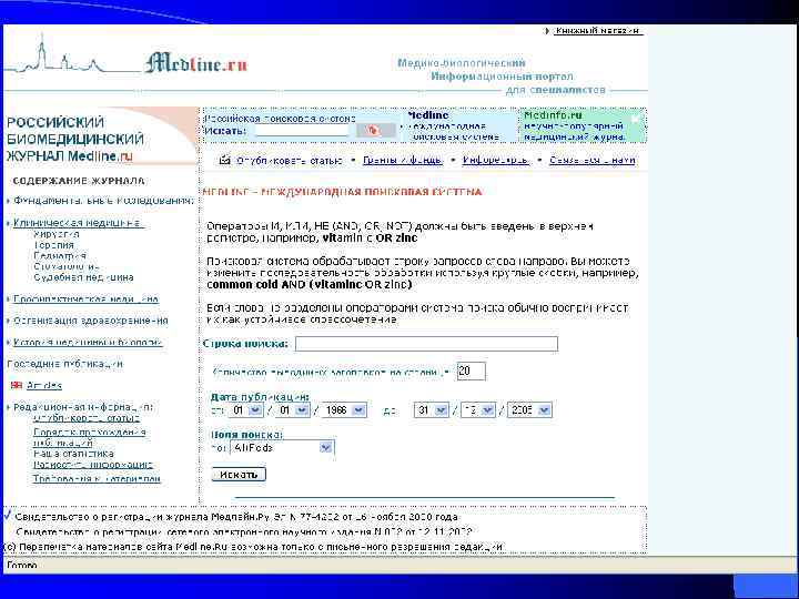 Русскоязычная база данных “МЕДИЦИНА” представлена в свободном доступе на Web-сайте ВИНИТИ (http: //www. viniti. ru); l содержит автоматизированную систему заказа копий (как в бумажной, так и в электронной форме) первоисточников. l