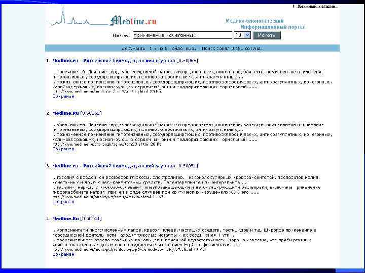 Электронные медицинские журналы – носители полнотекстовых документов Bio Med Net (http: // biomednet. com/ ) содержит 8, 5 млн. документов; l поиск производится по любому полю документа (ключевое слово, автор, название журнала); l документы ранжированы по степени релевантности; l выпускается на CD-Rom l