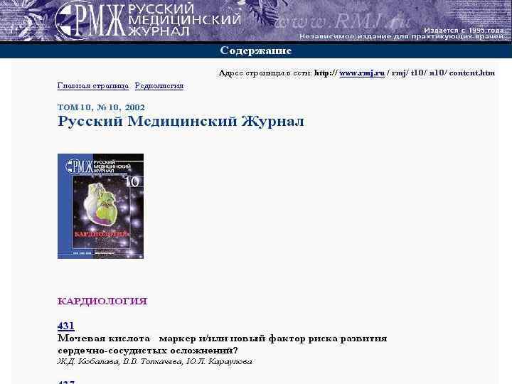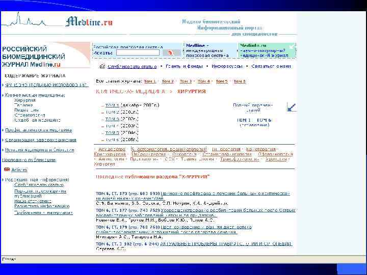 Весьма полезным является также адрес http: //www. webmedlit. com , позволяющий выходить на 18 ведущих электронных журналов в Интернете.
