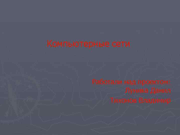 Компьютерные сети Работали над проектом: Луника Данил Тихонов Владимир