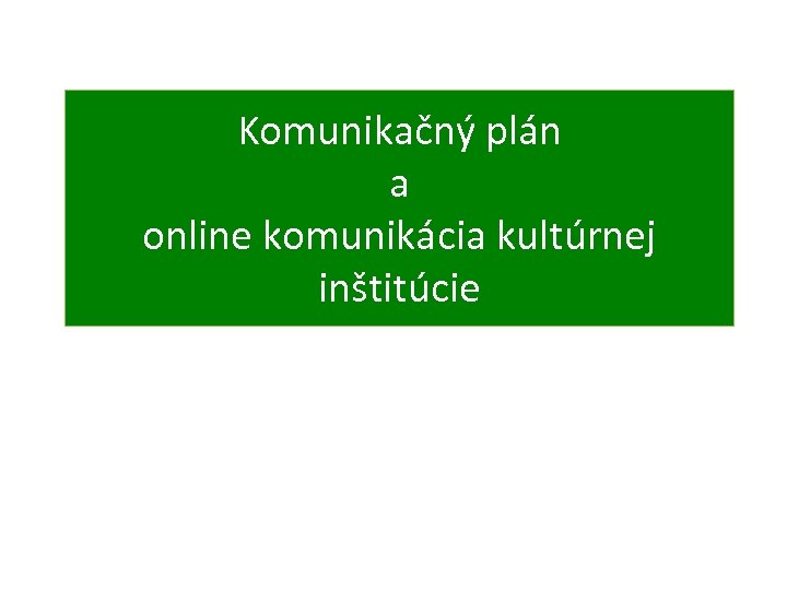 Komunikačný plán a online komunikácia kultúrnej inštitúcie