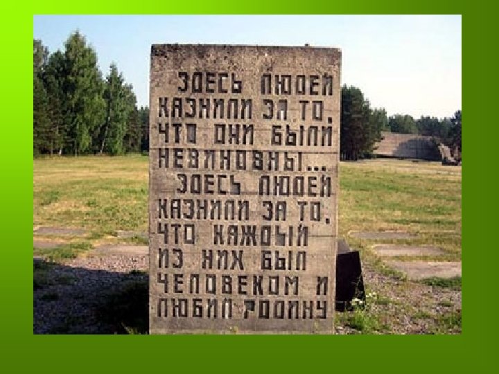 «На гранитную плиту положи свою конфету, Он как ты, ребенком был, Как и ты, он их любил, Саласпилс его убил» .