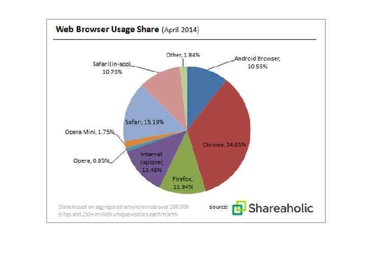 Самые распространённые браузеры (октябрь 2012): Internet Explorer Google Chrome Firefox Opera