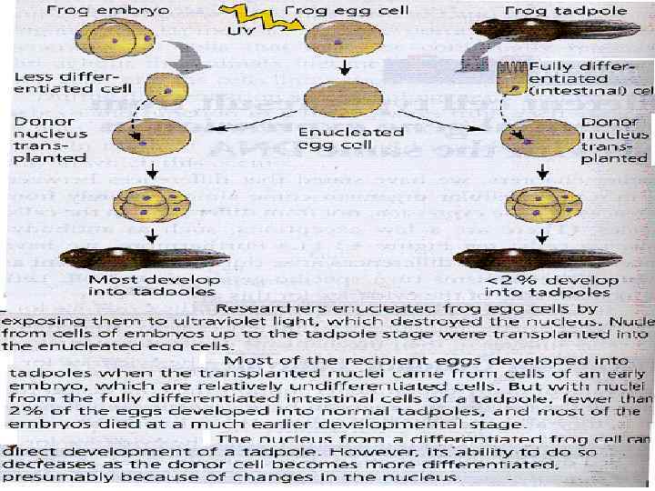 У животных возможна ядерная трансплантация Если ядра дифференцированных клеток пересадить в предварительно энуклеированные яйцеклетки или зиготы, то ядро способно обеспечить развитие в организма.