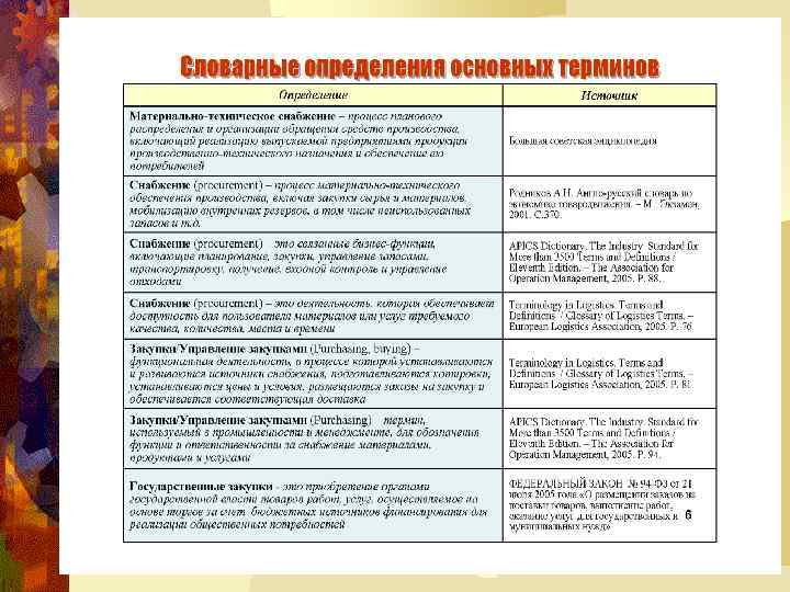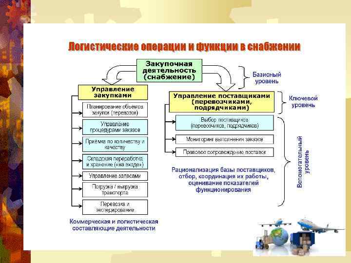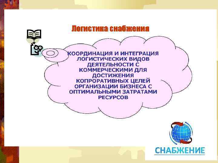 ЦЕЛИ ЛОГИСТИКИ СНАБЖЕНИЯ ® закупать требуемые товары и услуги с минимальными общими затратами; ® усиливать конкурентную позицию организации; ® добиваться гармоничных и продуктивных рабочих отношений с другими функциональными направлениями организации; ® добиваться достижения целей по закупкам с минимально возможными административными затратами.