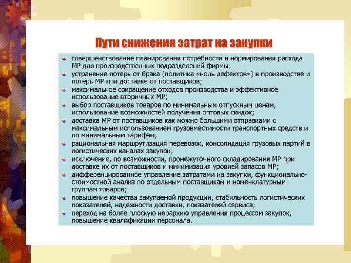 Связь снабжения со стратегией компании Благодаря своей ключевой роли – объединению многих функций – закупки могут внести заметный вклад, причём в виде нескольких составляющих, в достижение стратегического успеха организации. Рассмотрим эти составляющие.